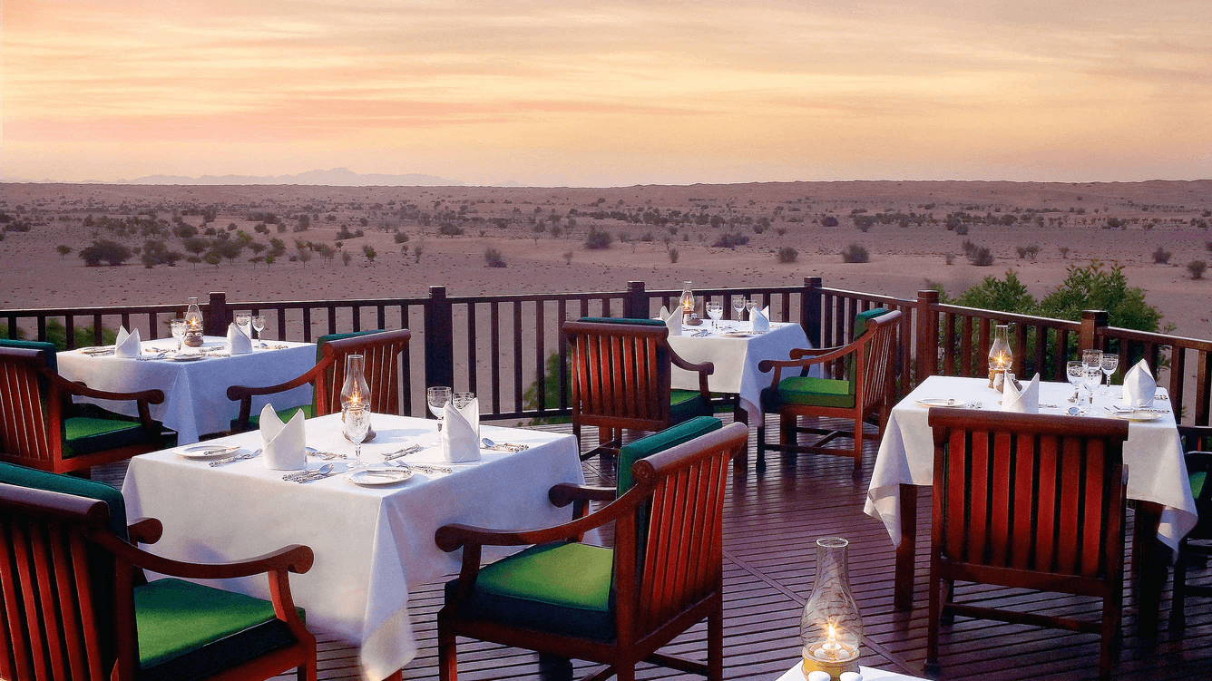 Dine in sophisticated style at our signature Al Diwaan restaurant. Sit alfresco on the veranda and enjoy breathtaking views of the reserve. It's a wonderful place to experience dinner in the desert during your Dubai visit.