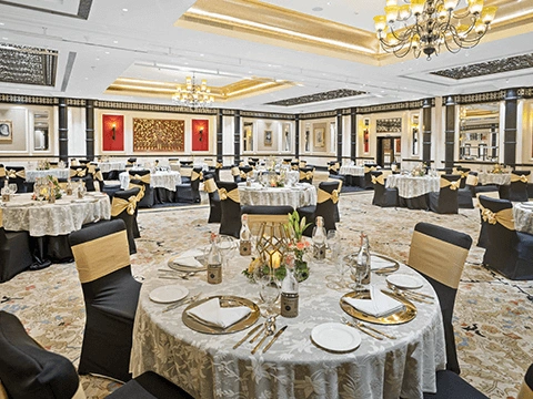 Max Capacity : 15Located at the lobby level, the Conference Rooms bear a distinct air of grandeur. Perfect for VIP meetings, this wood panelled hi-tech meeting rooms offer a maximum capacity of 15 guests with an inbuilt LED projector. The Conference Rooms offer intimate settings for small meetings, with the added advantage of easy access to restaurants and the Ballroom.
