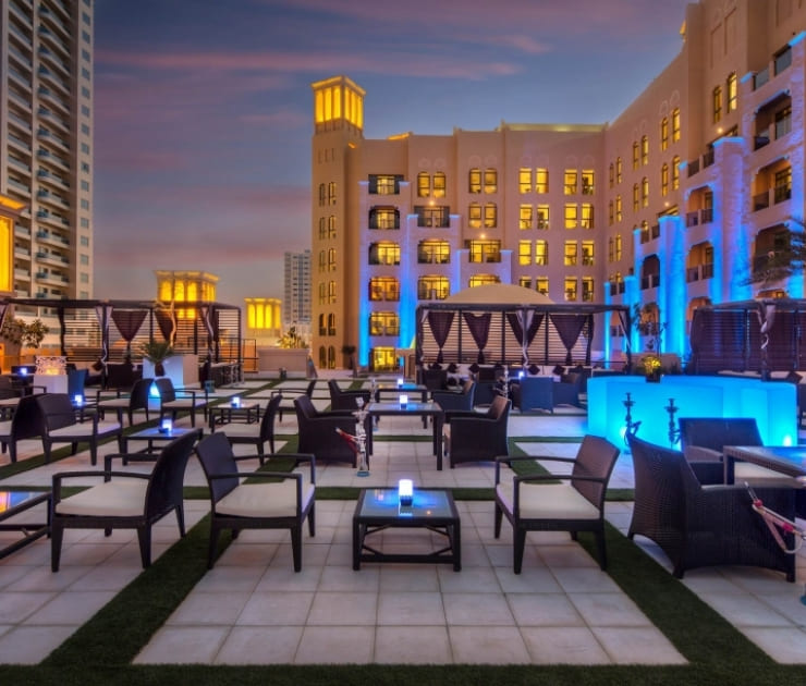 Enter into a world of the finest foods and enjoy a uniquely delicious experience at All Day Dining. You will find a variety of authentic Mediterranean dishes to choose from, as well as an à la carte menu freshly prepared by the best chefs. Our luxury restaurant features a mystical One Thousand and One Night, shaped in the form of a half crescent, with the hanging Arabian royal handmade lamps, mounted torches and warm design. We believe that food is a pleasure for the eye also, as you can watch our master chefs prepare delicious dishes at live cooking stations using only the finest ingredients. Savour international cuisine as well as a selection of Arab specialities, whether in your own privacy indoors or ‘al fresco’ on our spacious terrace which overlooks the magnificent Arabian Gulf for a truly unforgettable experience.